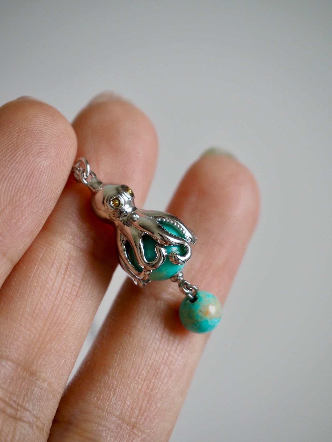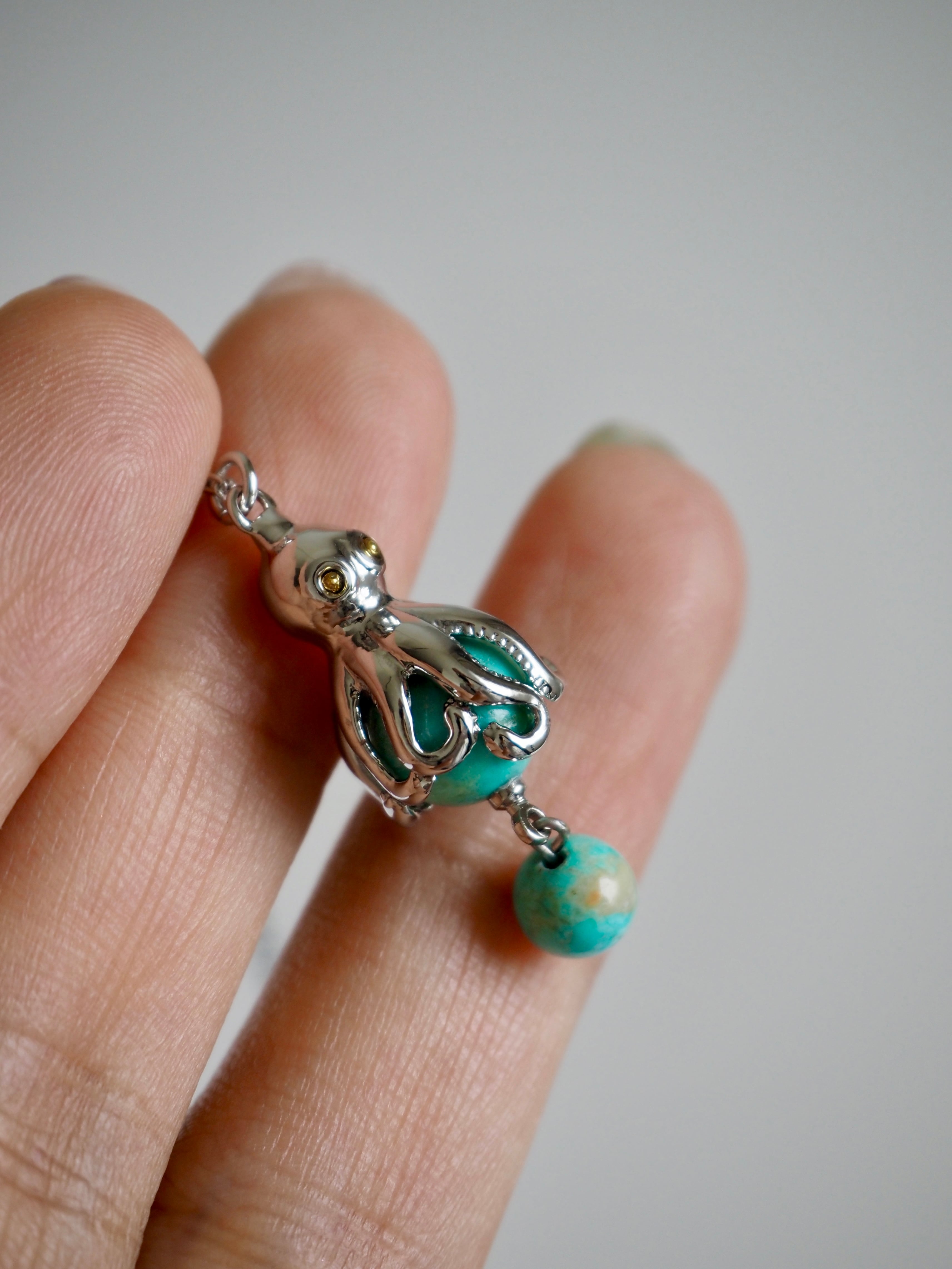 天然のターコイズを捕食しているようなタコをネックレスに。