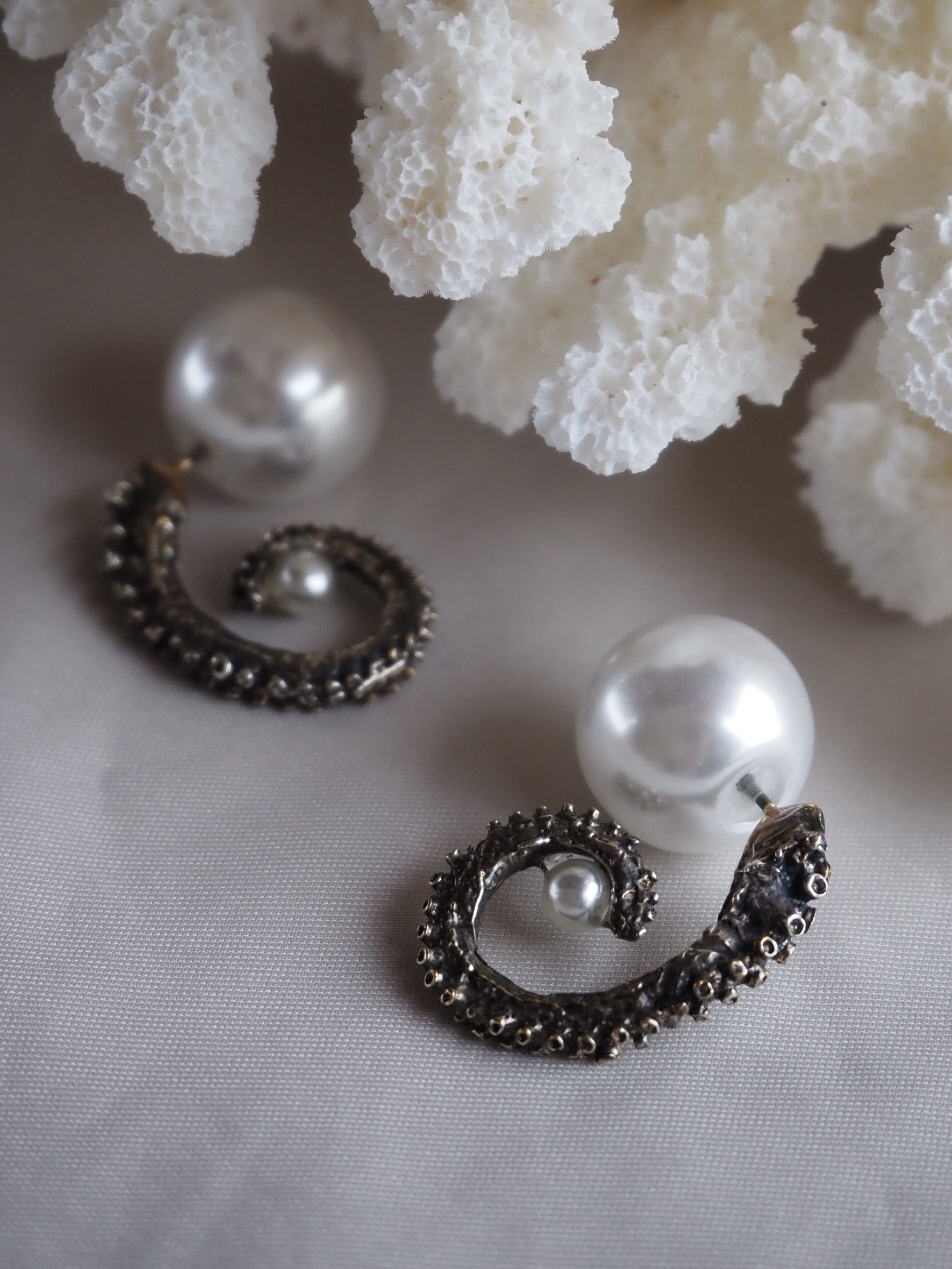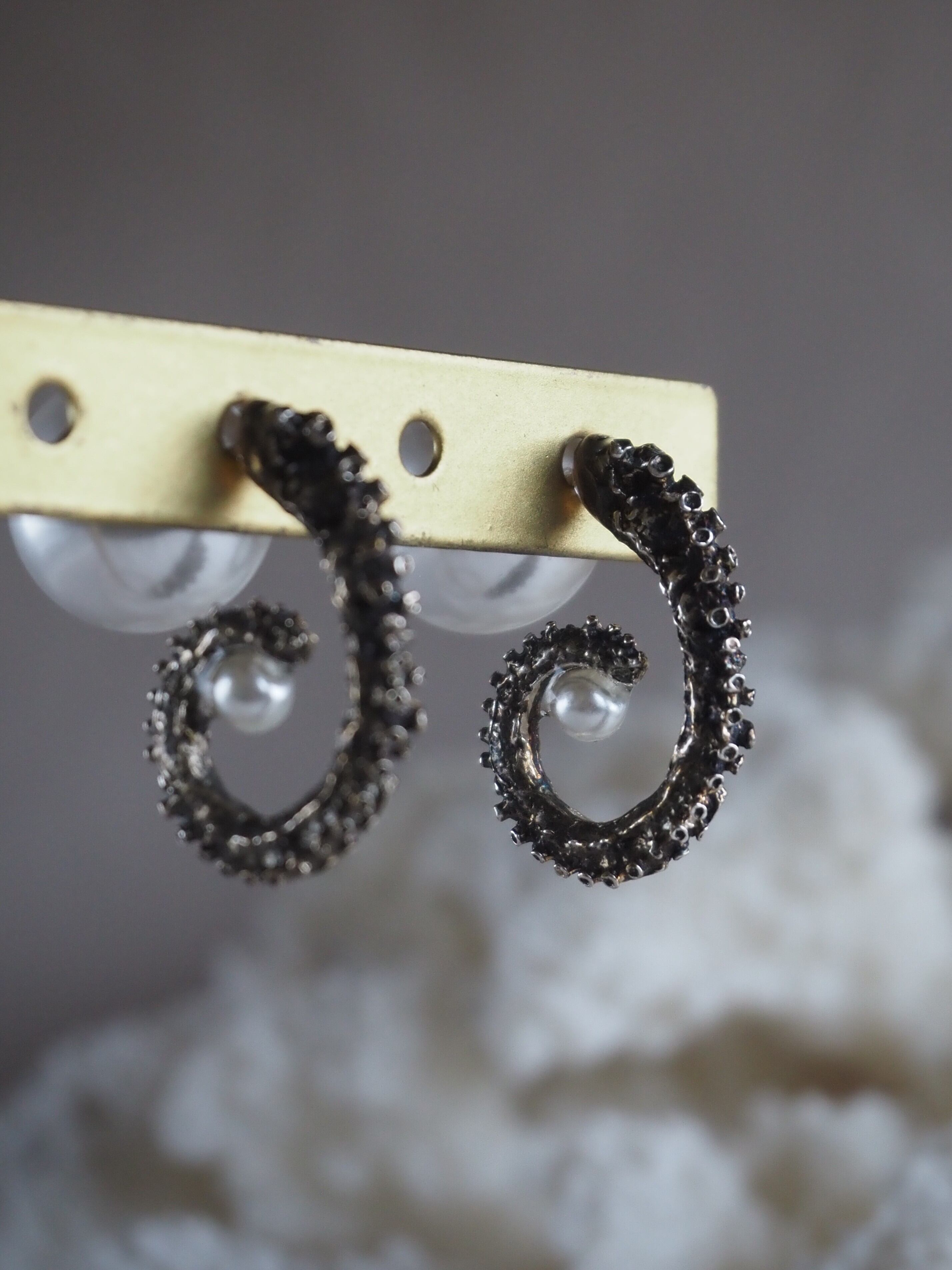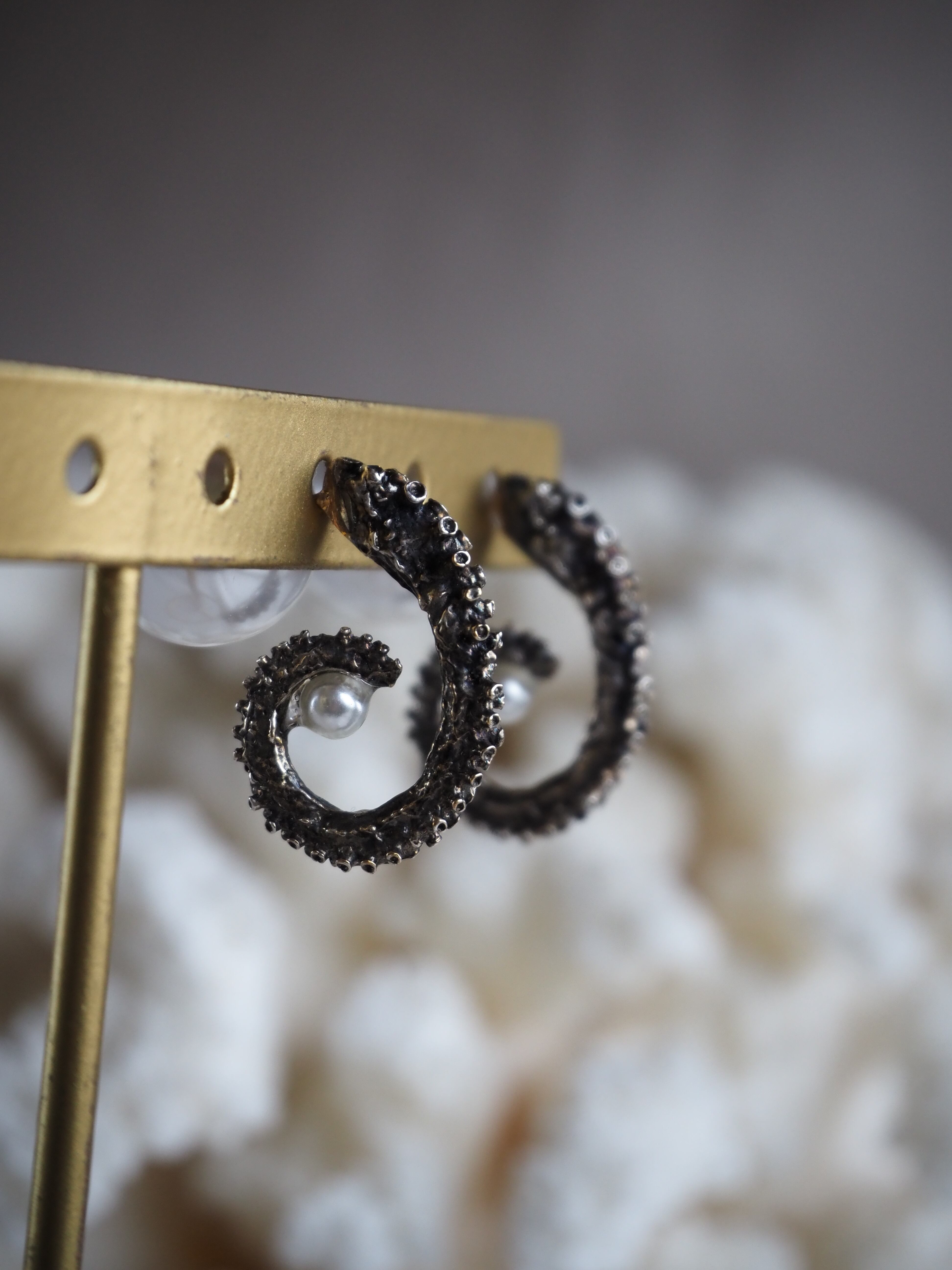 タコの涙 ピアス - 本物のタコを型取り(シルバー燻し)