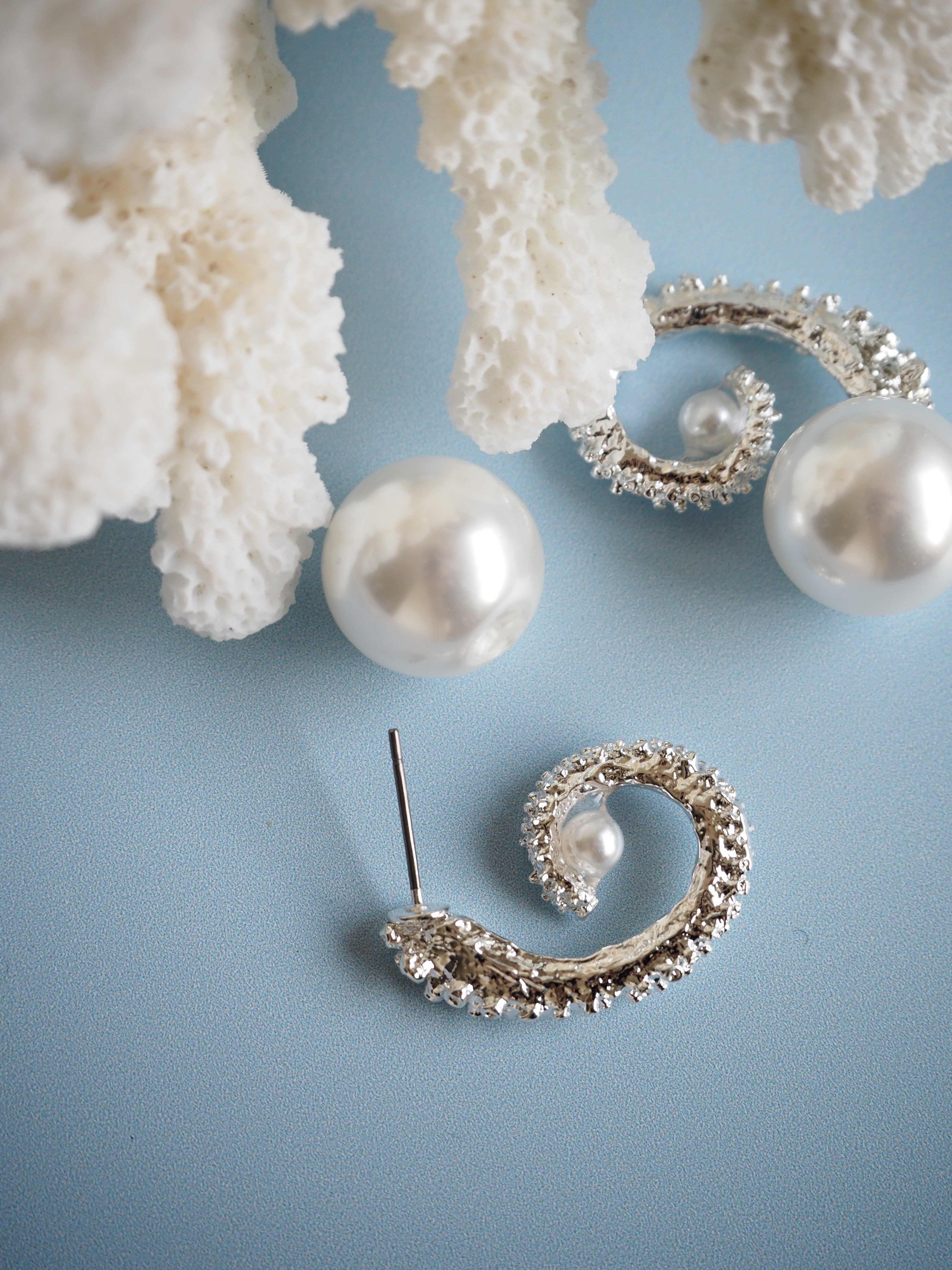 シルバー925(燻し加工)、樹脂、イミテーションパール、チタンポスト(アレルギー対応)、樹脂パールキャッチ