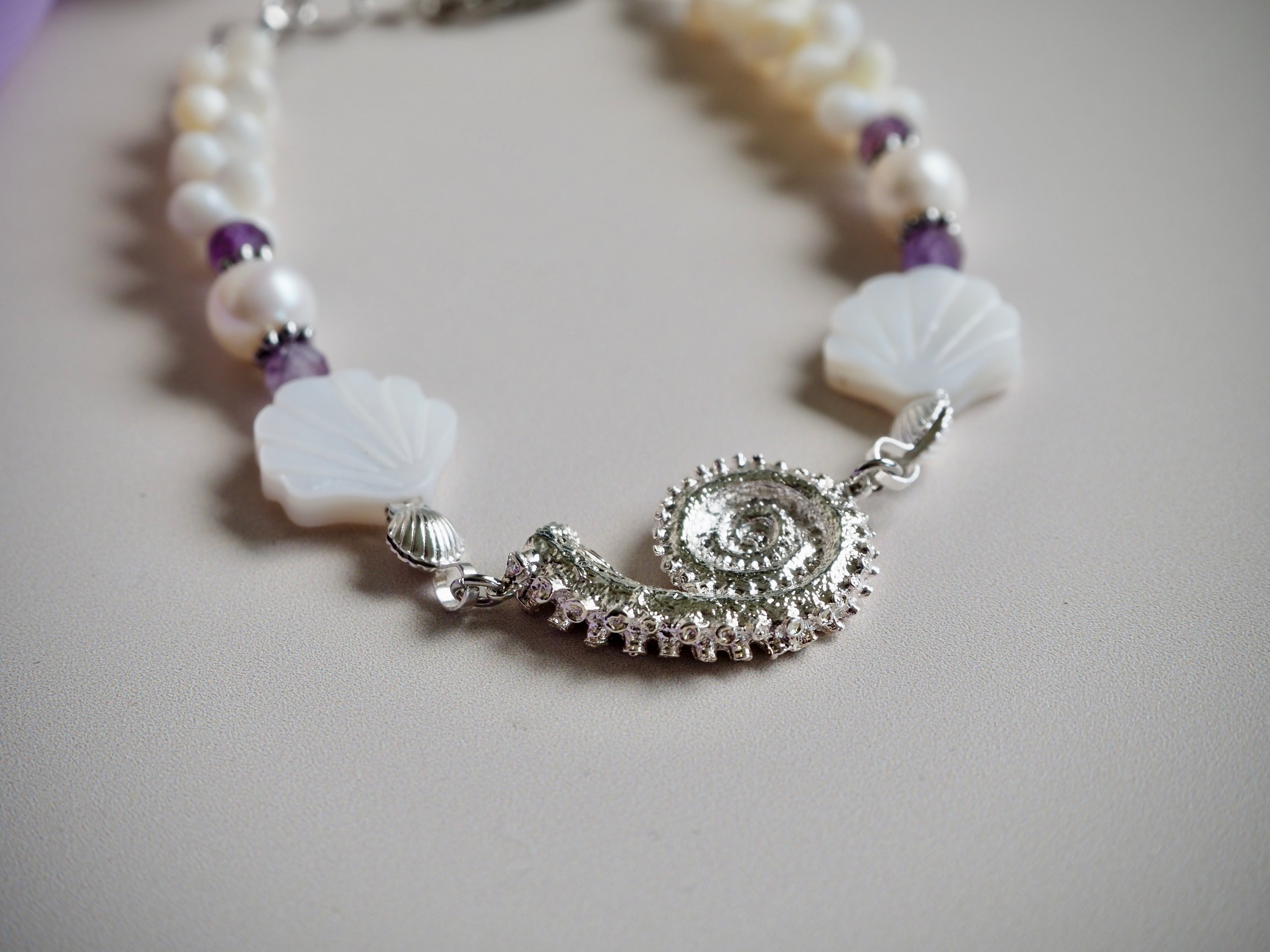 タコの人魚ブレスレット(淡水パール、アメジスト、淡水真珠貝)